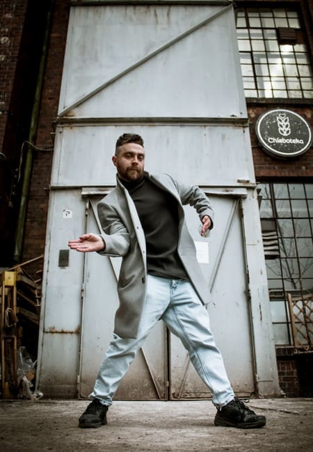 Konrad to specjalizuje się w poppingu i prowadzi zajęcia z techniki ze streetowymi zespołami Egurrola Dance Studio Wrocław.