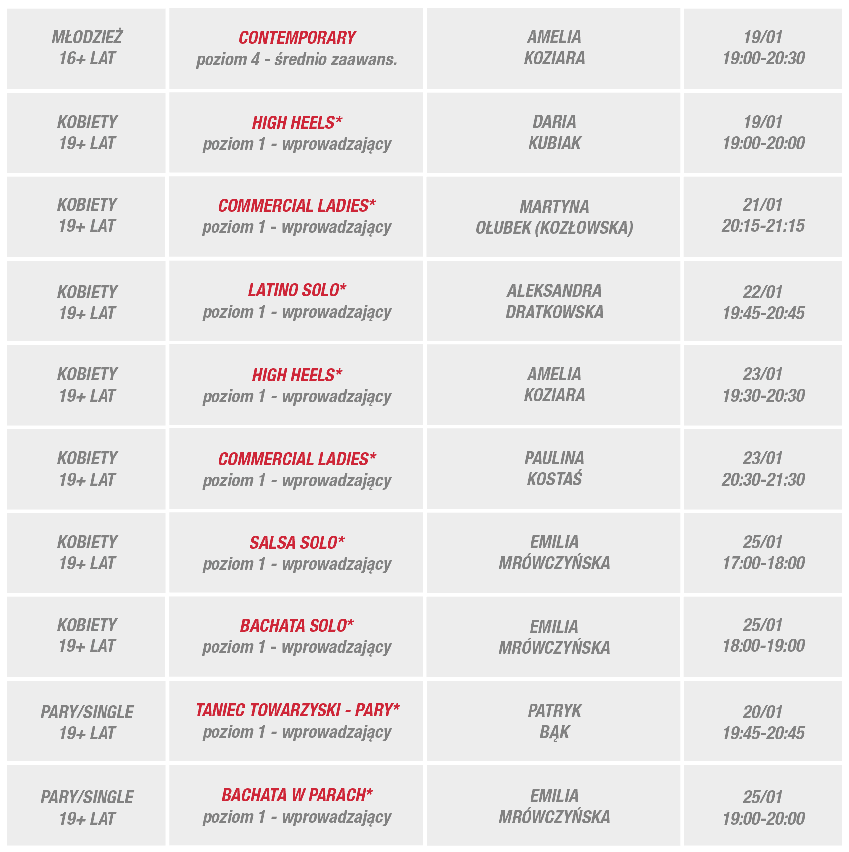 Zapraszamy w wybrane dni tygodnia 19-25 stycznia do Egurrola Dance Studio – Łódź, Manufaktura, poziom +2, ul. Drewnowska 58.