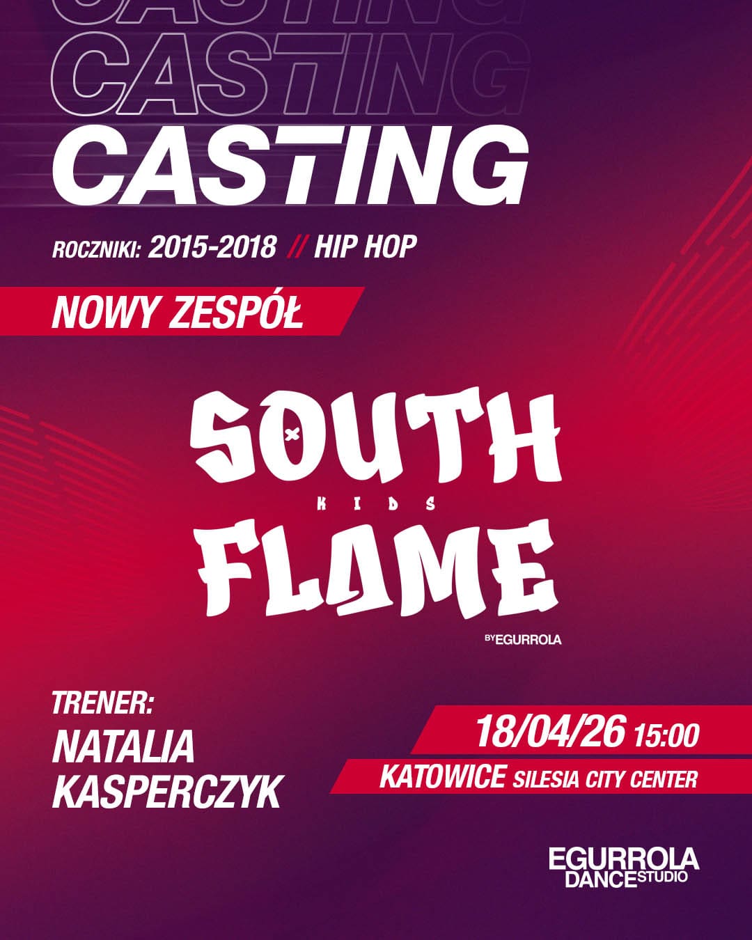 Nowy dziecięcy zespół hip hopowy, który od września 2026 roku będzie trenować w Egurrola Dance Studio Katowice pod okiem Natalii Kasperczyk.