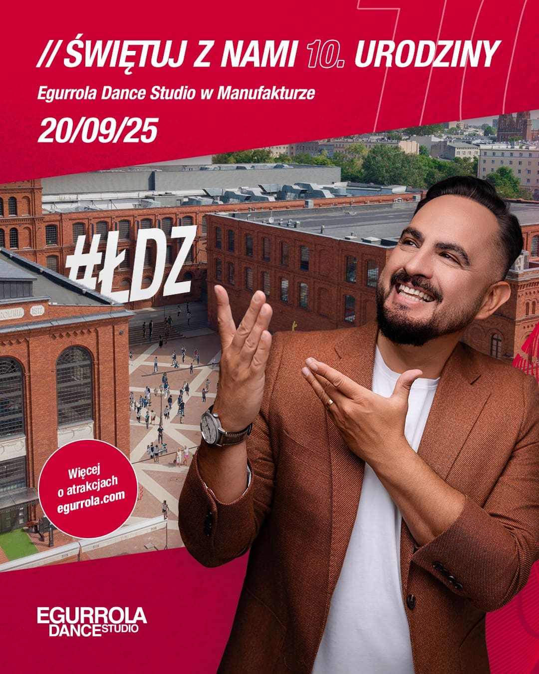 Już 20 września zapraszamy na wspólne celebrowanie wyjątkowego święta – 10. urodzin Egurrola Dance Studio w łódzkiej Manufakturze!