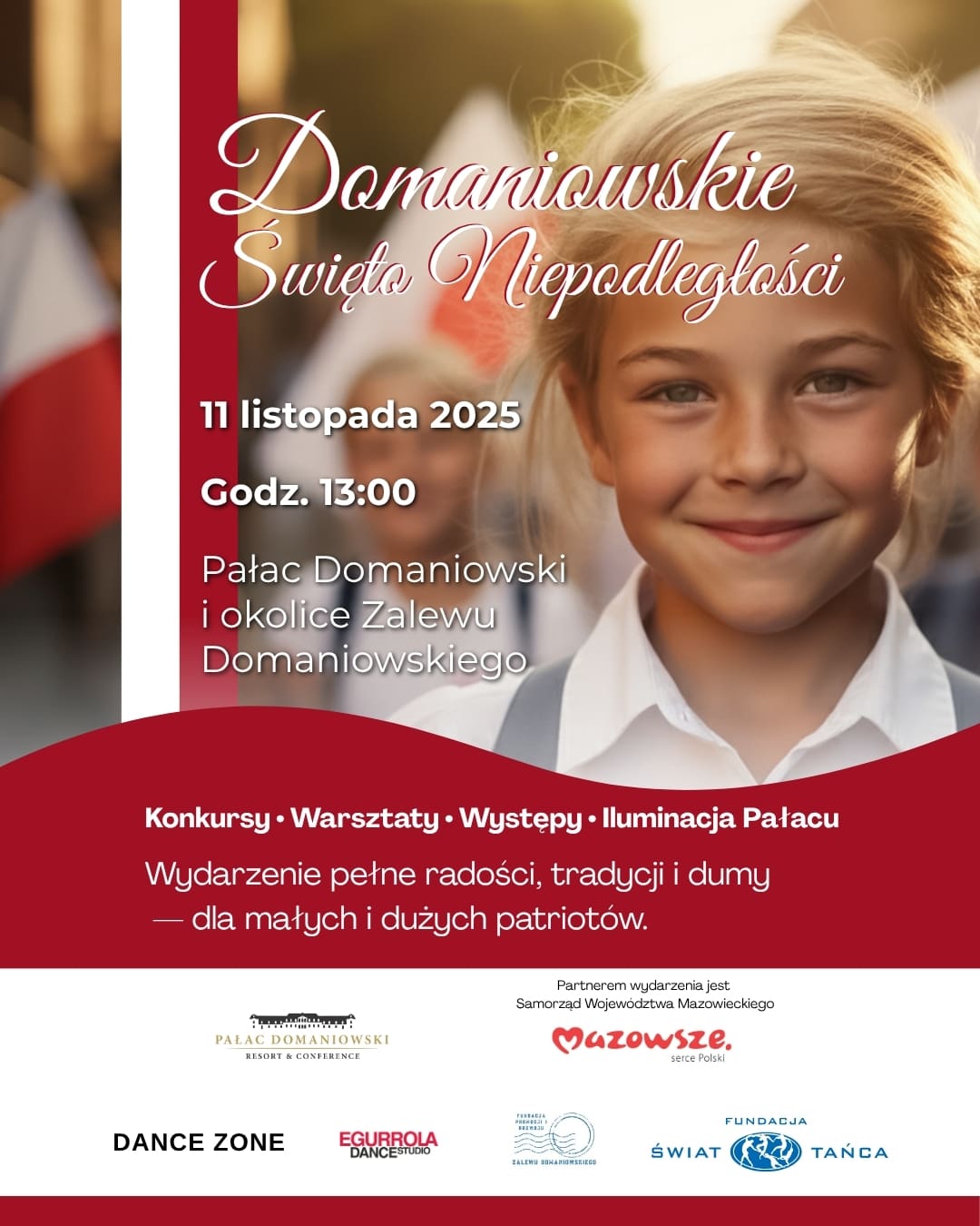 Zapraszamy do udziału w wyjątkowych obchodach Święta Niepodległości w malowniczym Pałacu Domaniowskim. To dzień pełen emocji, wzruszeń i wspólnego świętowania w duchu patriotyzmu, muzyki i integracji pokoleń. W otoczeniu natury, nad brzegiem Zalewu Domaniowskiego, stworzymy przestrzeń, w której historia spotka się z radością i wspólnotą.