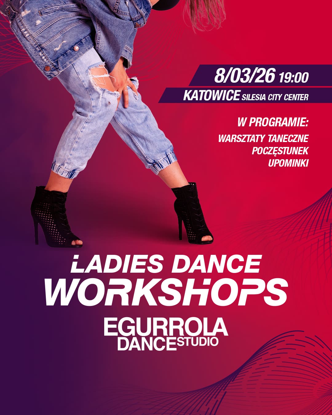 Czekamy na Was już w niedzielę 8 marca  w Egurrola Dance Studio Katowice, poziom +2, ul. Chorzowska 107. Warsztaty odbywać się będą w godzinach 19:00-20:30. Dla wszystkich uczestniczek przygotowaliśmy też upominki i pyszny poczęstunek.