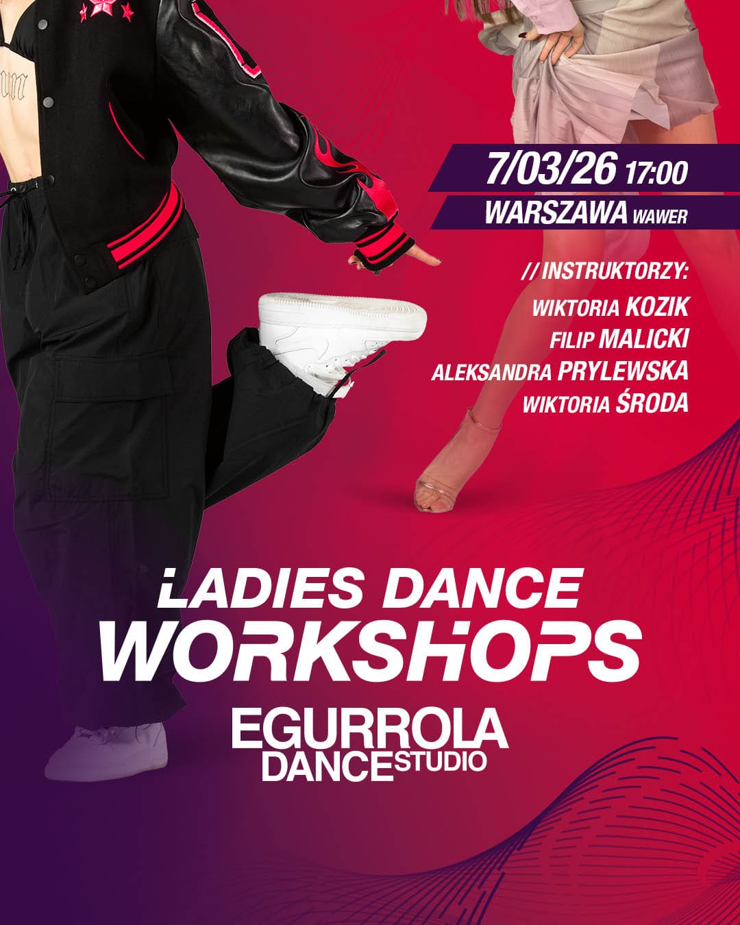 Ladies Dance Workshops to dwa kobiece style tańca, trzy godziny tańca i czworo instruktorów, którzy zapewnią Wam fantastyczną zabawę na parkiecie!