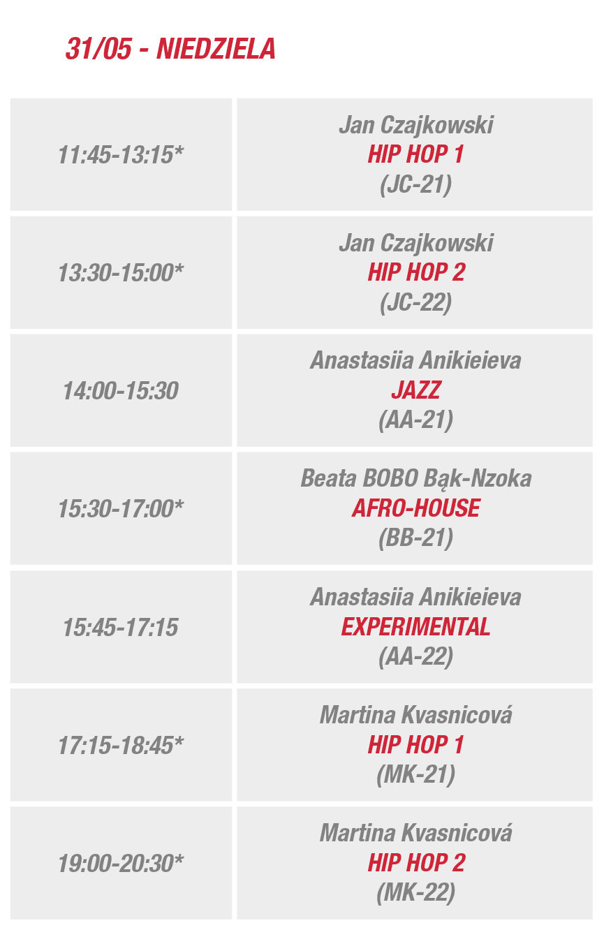 Lekcje oznaczone gwiazdką odbywać się będą w Fabryce Formy (Silesia City Center, poziom +1)
