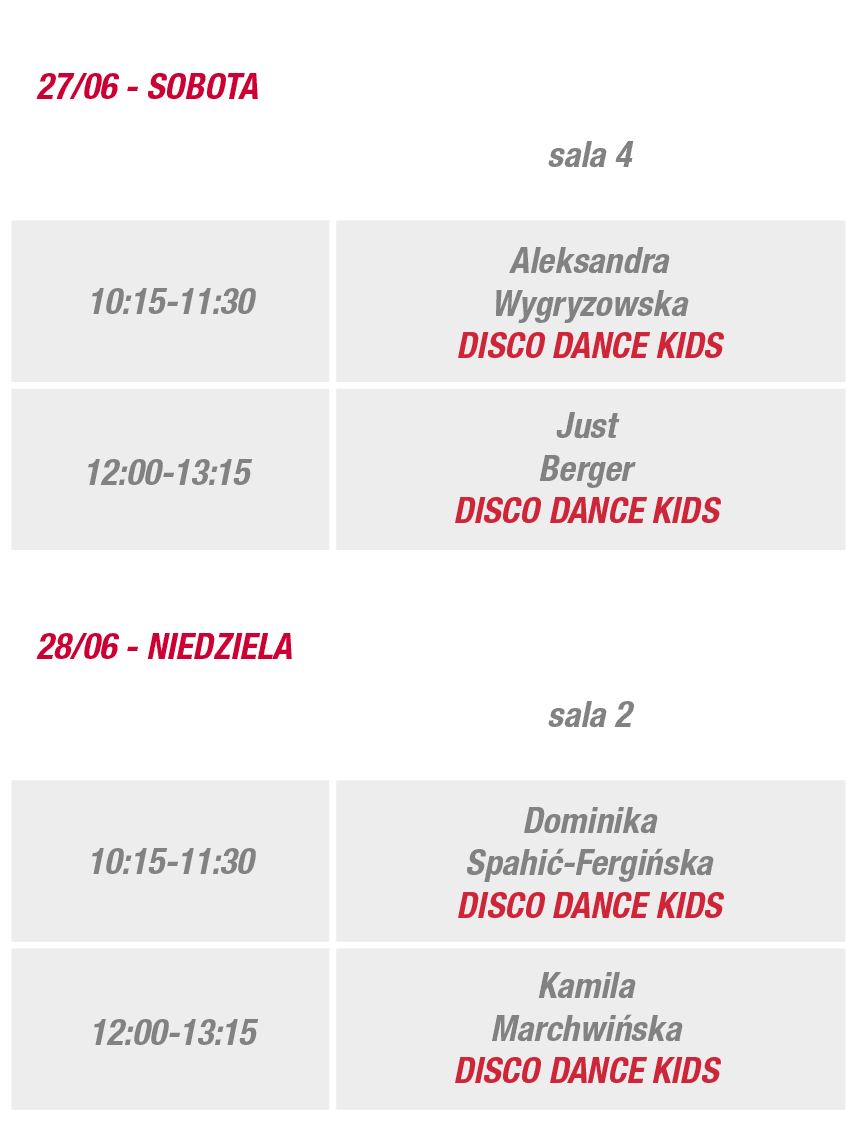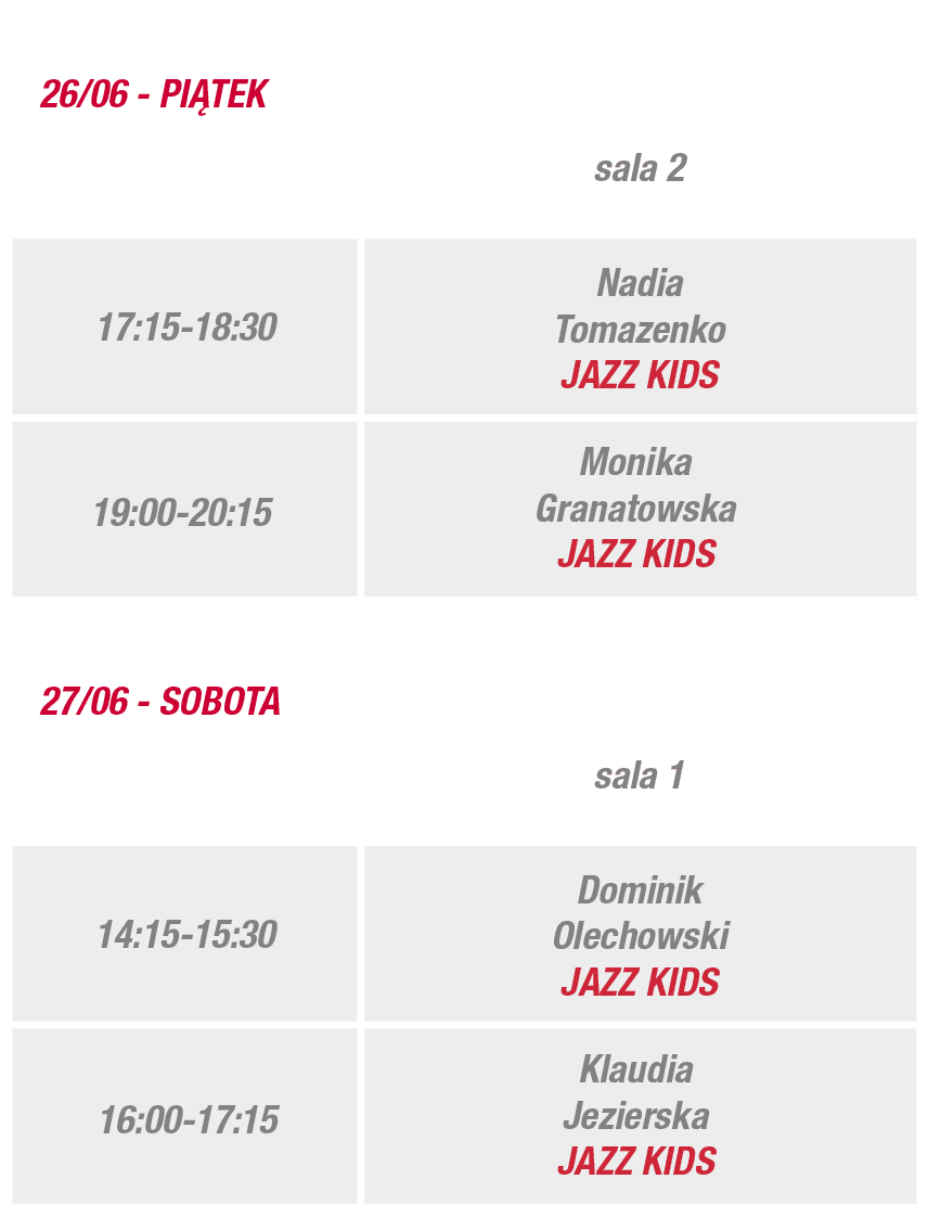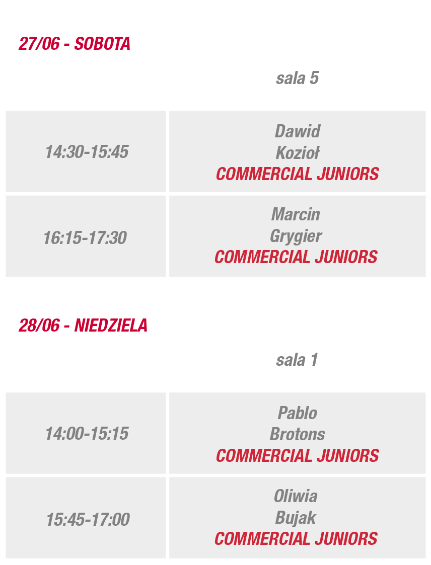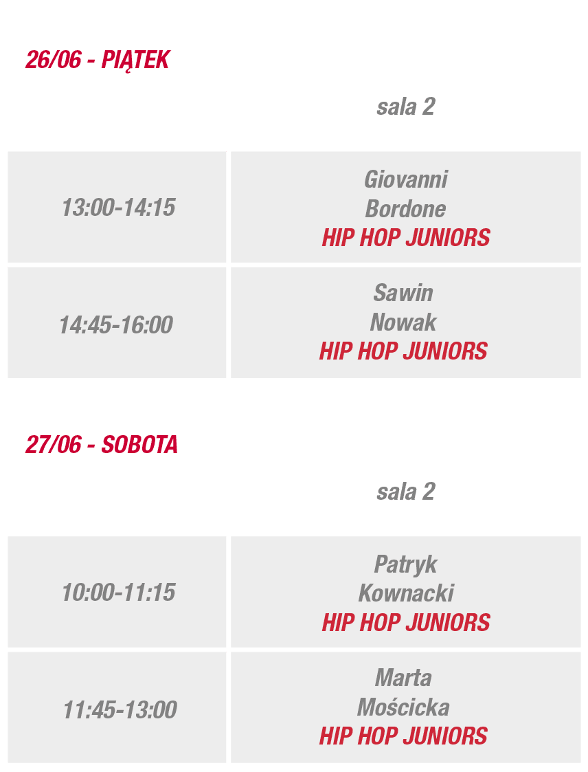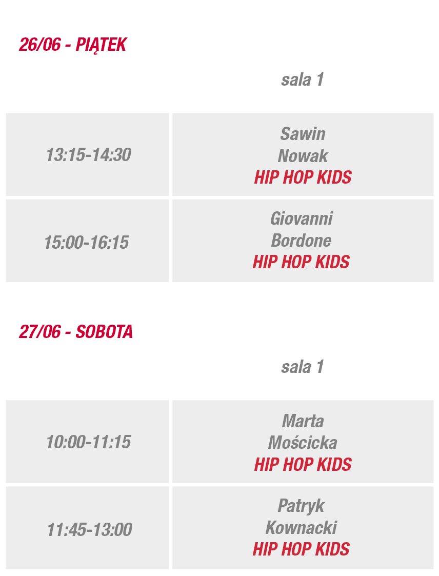 Każdy z naszych gości poprowadzi zajęcia dla grupy kids (9-12 lat) oraz juniors (13-16 lat), abyś mógł rozwijać swoje umiejętności w gronie rówieśników!