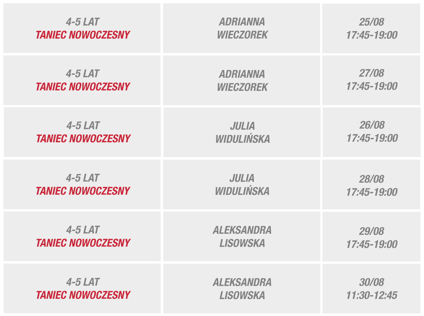 Zajęcia w ramach tygodnia adaptacyjnego odbędą się w Egurrola Dance Studio – Warszawa Blue City, poziom + 2, Al. Jerozolimskie 179.