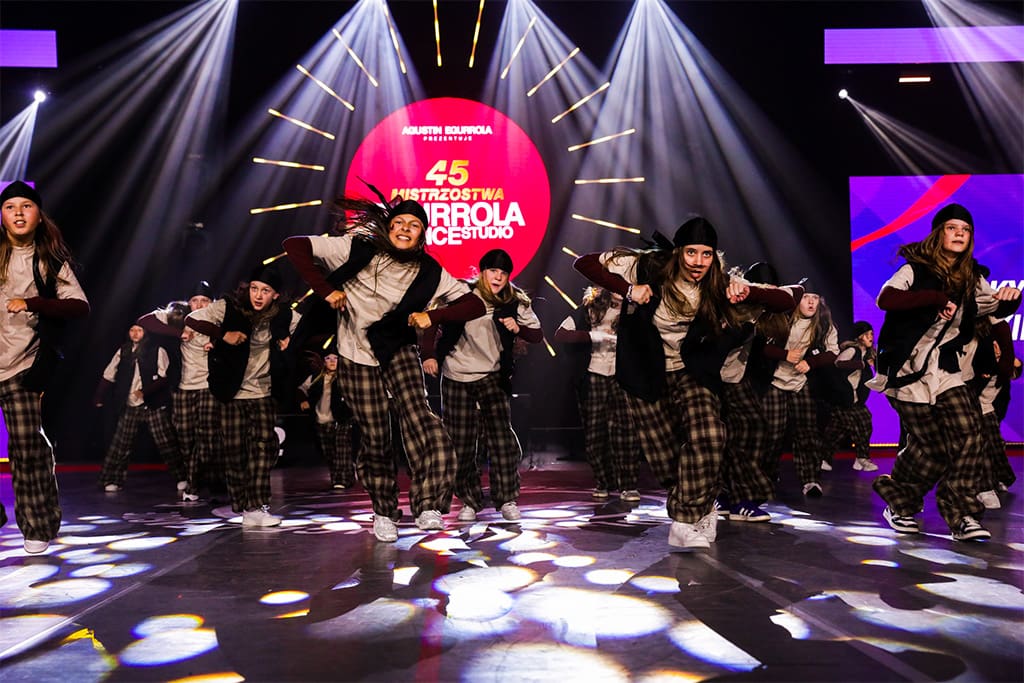 Dziecięcy zespół hip hopowy trenujący pod okiem trenerki Mai Brykowskiej w Egurrola Dance Kids Praga-Południe, czyli w elitarnej szkole tańca w Warszawie w dzielnicy Praga-Południe.