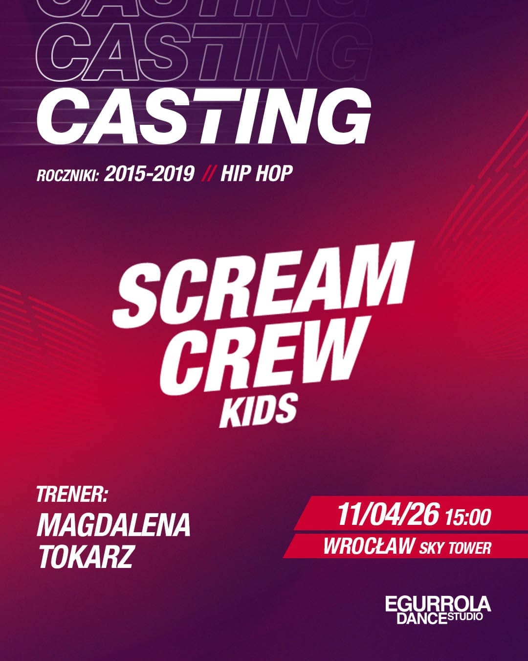 Scream Crew Kids to zespół ambitnych i zakochanych w hip hopie dzieci reprezentujących szkołę Egurrola Dance Studio we Wrocławiu. Trenerem i choreografem zespołu, który dba o ich jak najlepsze występy na turniejach, jest Magdalena Tokarz.