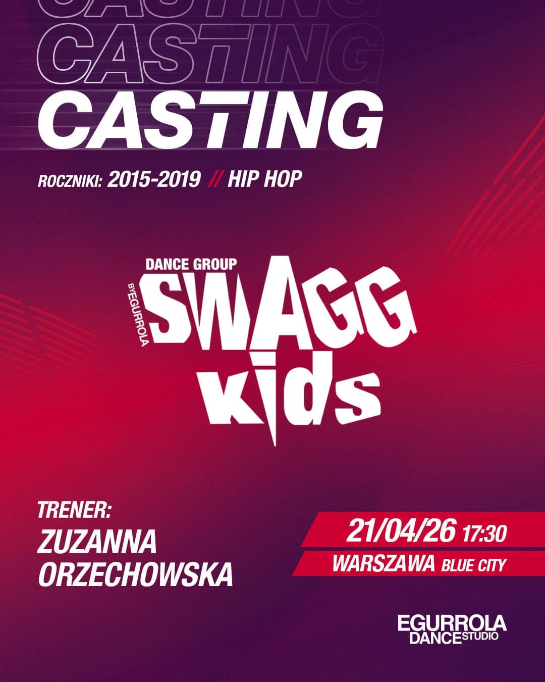 Trener zespołu Swagg Kids. Swoją przygodę z tańcem rozpoczęła w wieku 6 lat. Po kilku latach tańczenia baletu zdecydowała się na zmianę stylu – przeniosła się do Egurrola Dance Studio i tam pod okiem najlepszych instruktorów zdobywała wiedzę oraz rozwijała swoje umiejętności hiphopowe.
